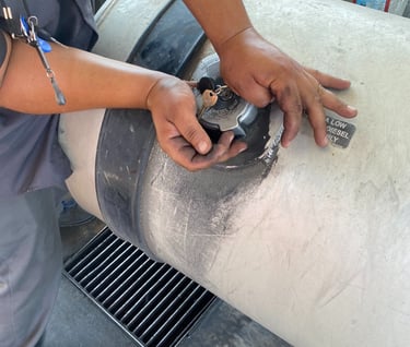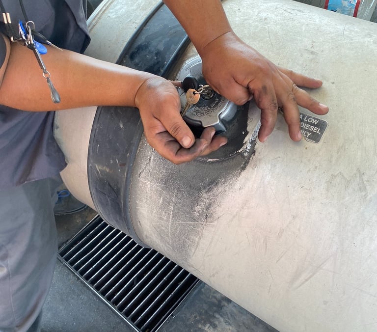 It was a hot day today in Mexicali, Baja California. Had an encounter today with a very "unpleasant" Freightliner. We foresaw the problem of the day, when we reached to check the diesel cap.